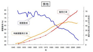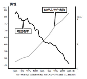 喫煙者は、減ってるけど、肺がん患者は増加傾向。