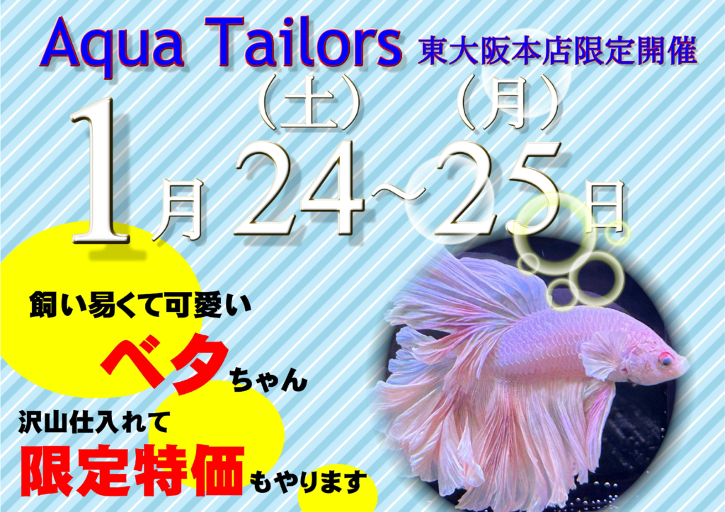 アクアテイラーズ尼崎つかしん店は2月1日から暫くの間、店内改装のため休業させて頂きます。