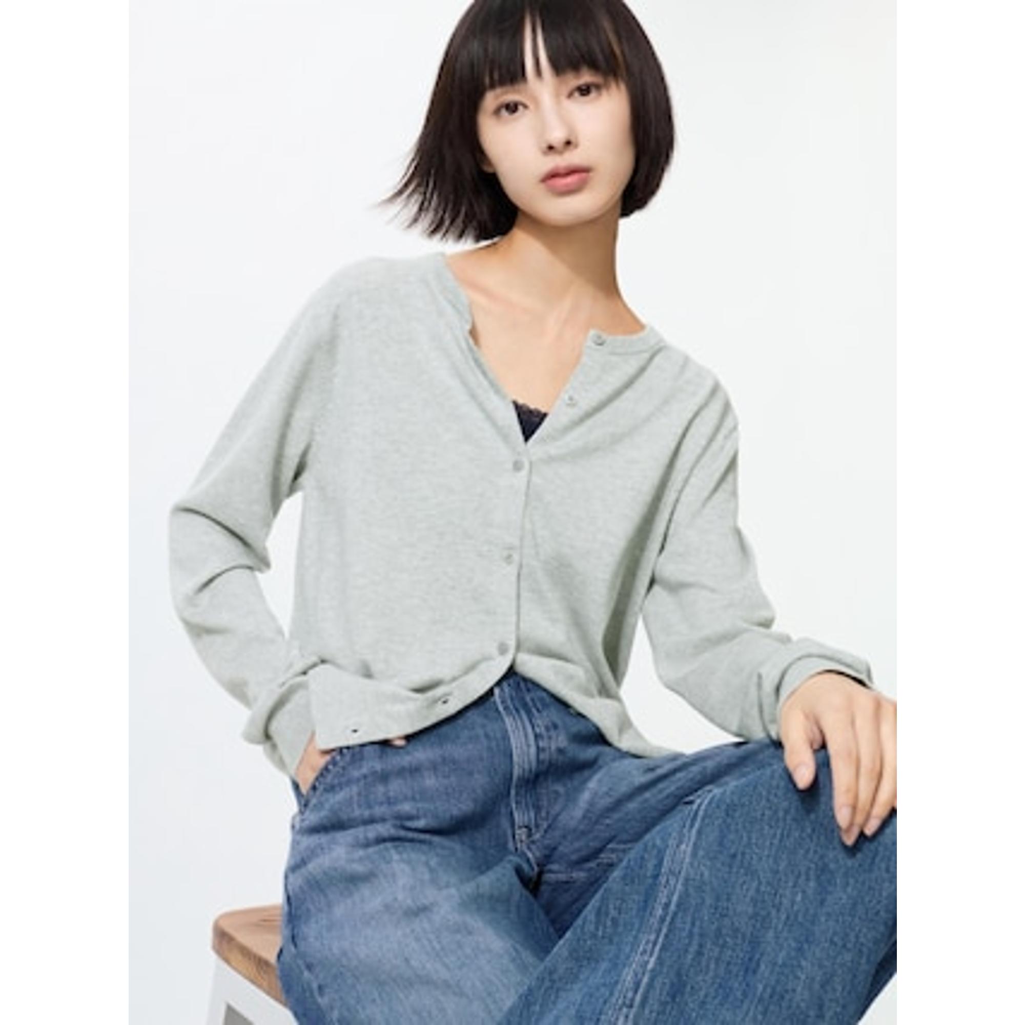 ユニクロでは期間限定でお得になっているUVカットクルーネックカーディガンのブラックとグレーを2色買いしました![]()