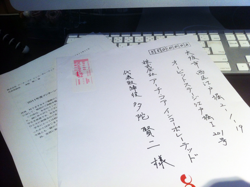 先日、インターンシップの事後報告(インターが終わって1ヵ月後くらいに送られてきます)が届きました。