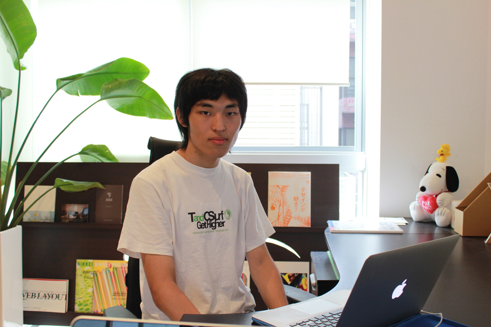 8/29 インターン二人目、開始です。 今日から、インターンシップ二人目、古島 弘晟くんです。みなさん、よろしくお願いします。なんと、古島くんは、MacBook Air持参です!さて、これから13日間、よろしくです。がんばってください。