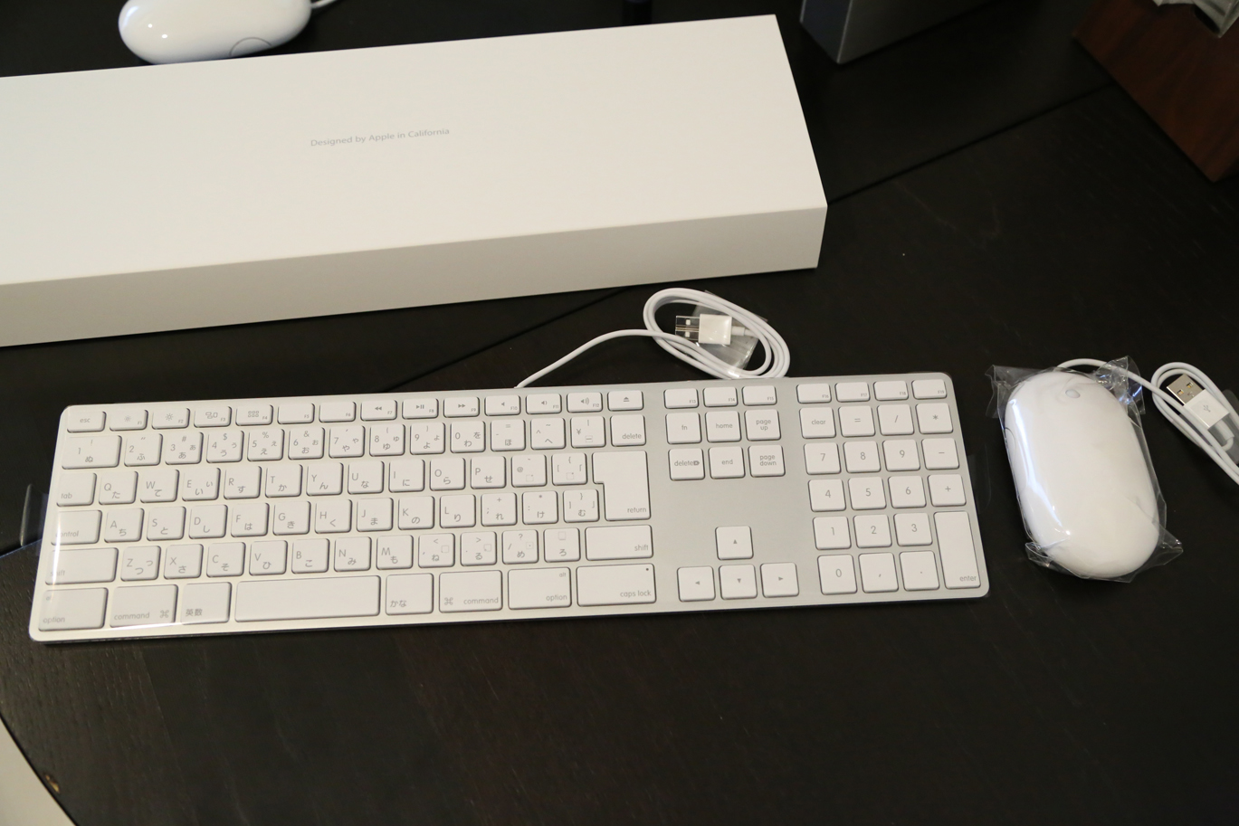 コード付のテンキー付キーボードと、Apple Mouseです。