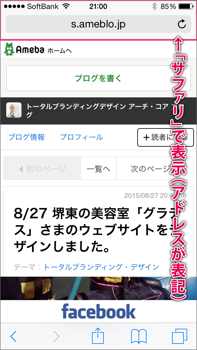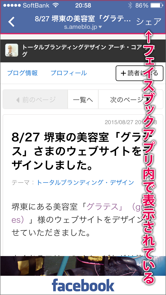 何故か「Safari」で開かずに、「Facebook」のアプリの中で開くんですよね(^-^;)