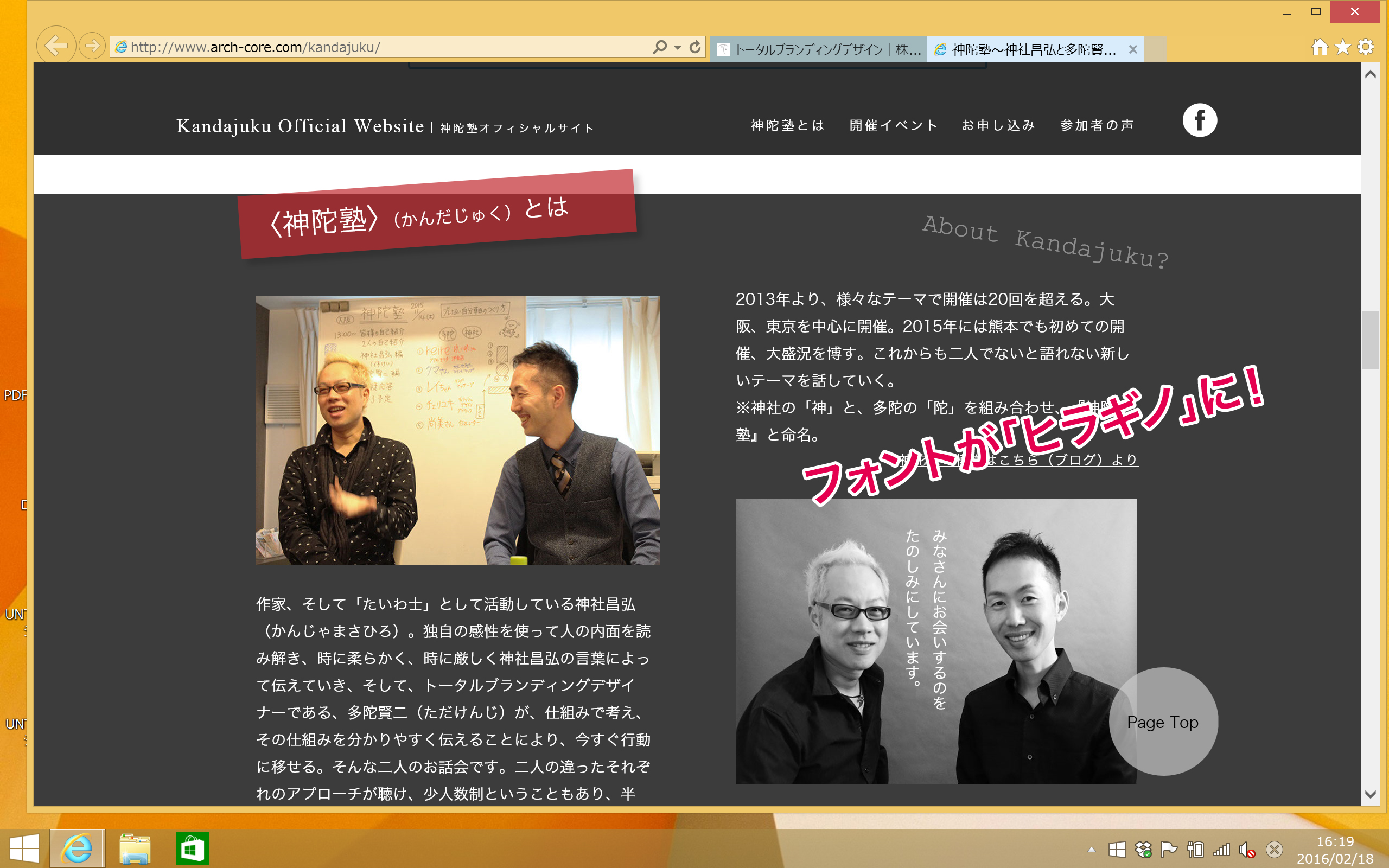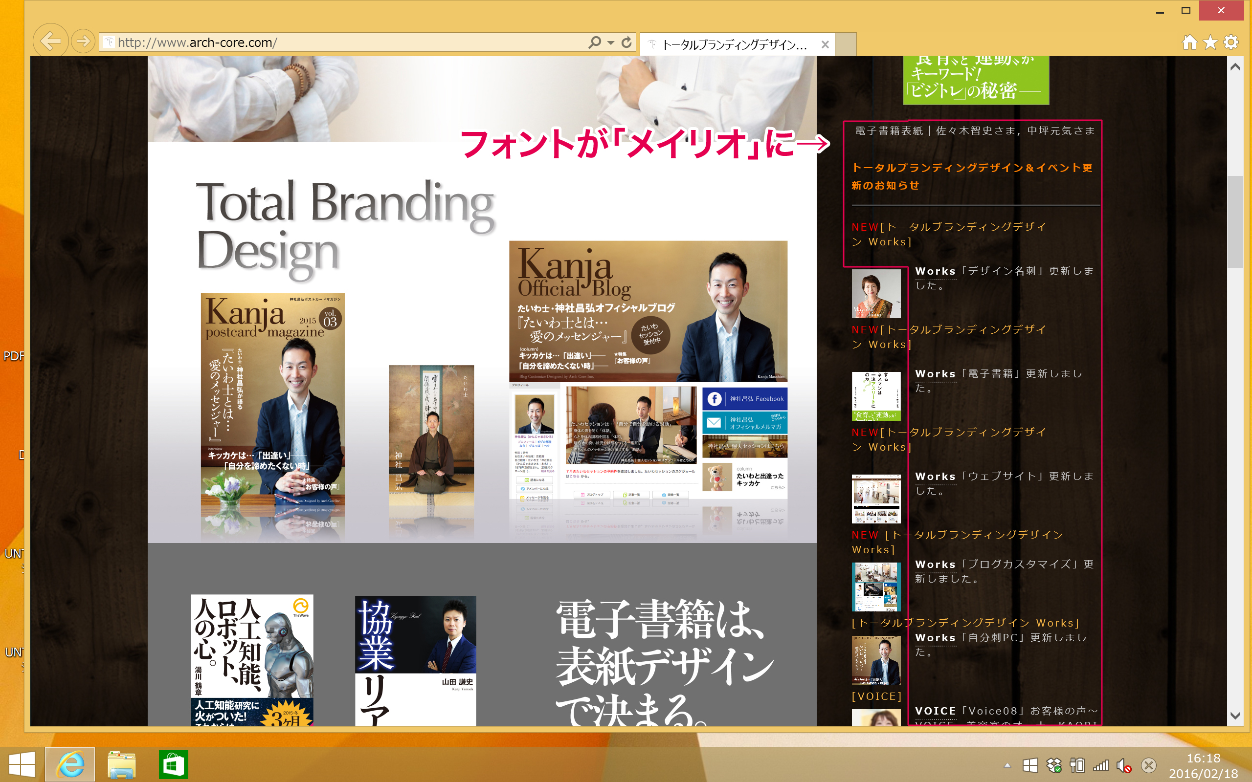 で、たまにBootCampでWindowsを立ち上げていたとき、ブラウザを立ち上げたときに「ホーム」で、自分のアーチ・コアのサイトを設定しているのですが、やはり、Windowsでみるとフォントが「メイリオ」になっているので、メイリオがダサくて気にくわないのですが(笑)