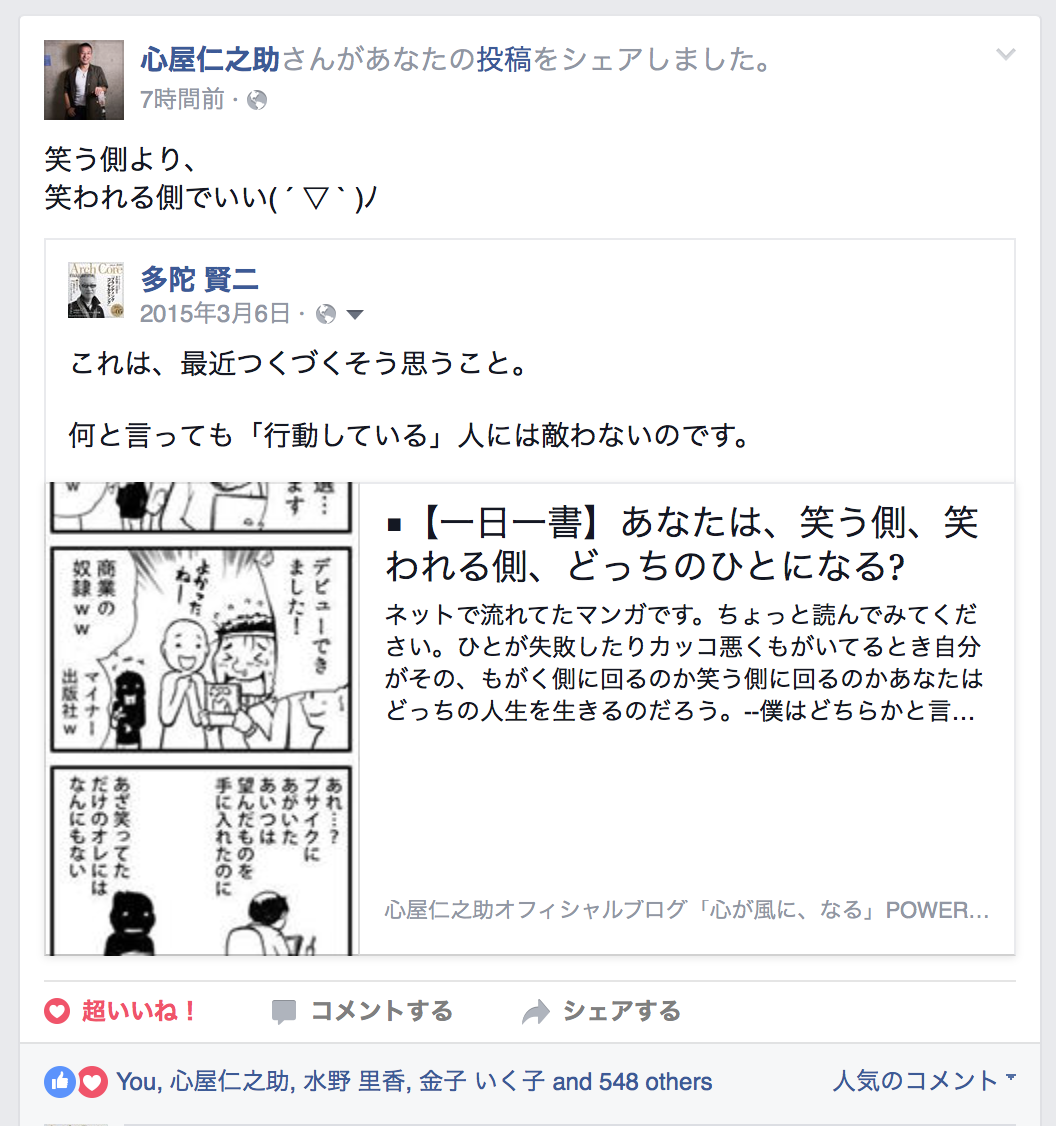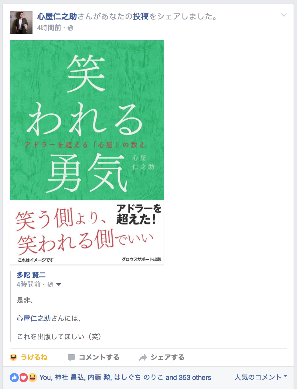 普段、仁之助さんのFacebookの画面って、ずっとこんなのでしょうね~(^-^;)