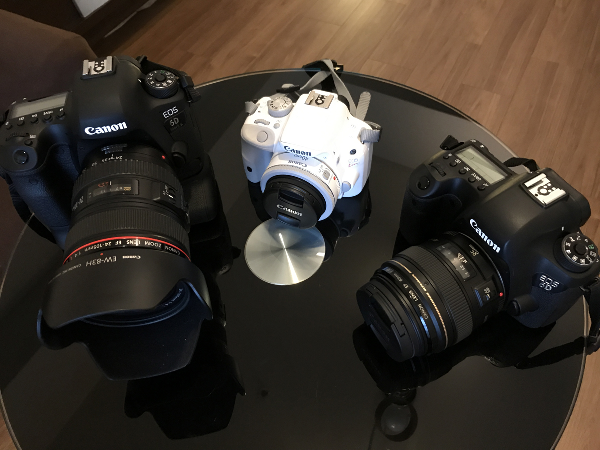左から、6D MarkII、Eos Kiss X7(ホワイトキッス)、6D