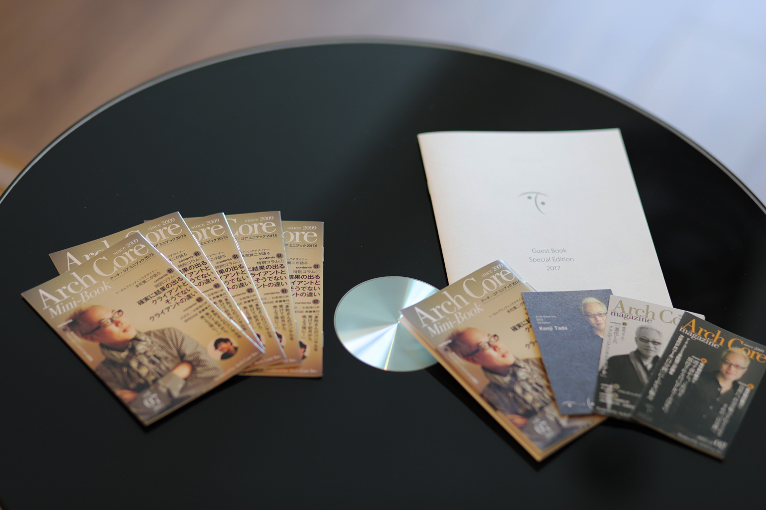 左が「自分刺ミニブック」(5部セット)、右が「アーチ・コアセット」(自分刺ミニブック、デザイン名刺、自分刺8、自分刺4P、ゲストブック各1部ずつ)