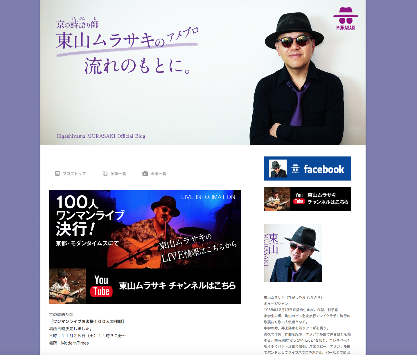 東山ムラサキワンマンライブの映像(2017.11.25)はこちら 〜YouTubeより〜