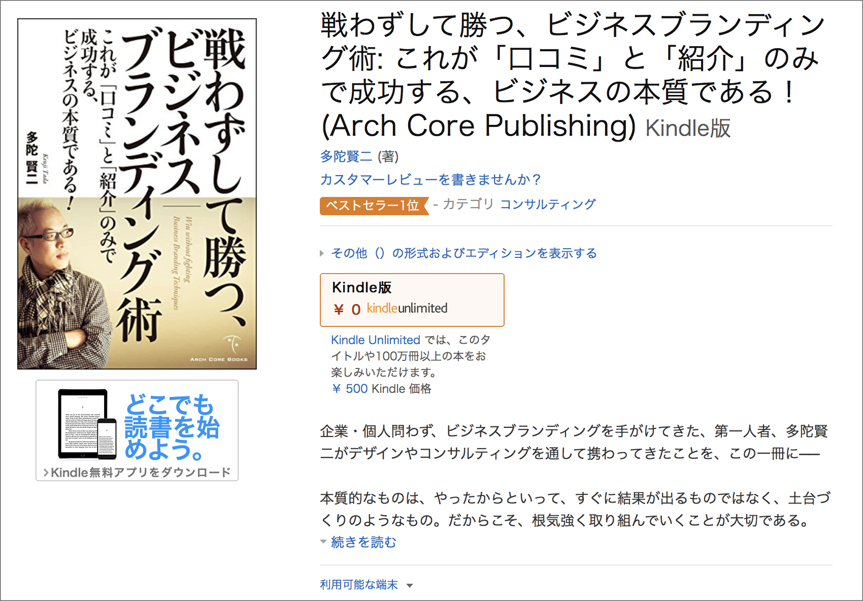 2年ぶりとなる新刊、『戦わずして勝つ、ビジネスブランディング術: これが「口コミ」と「紹介」のみで成功する、ビジネスの本質である!』(電子書籍)出版しまして、