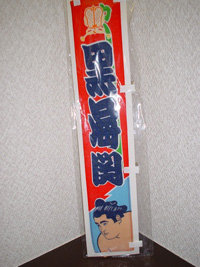 二日目に国技館で、もらいました。やっぱり、化粧まわしは明治ブルガリアヨーグルトです。