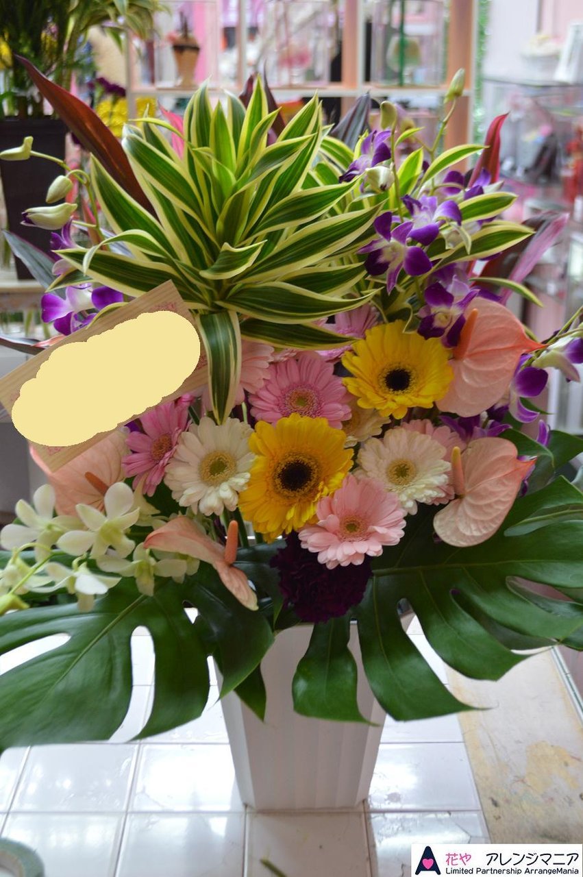 沖縄で、開店祝いや周年祝い、コンサート、誕生日、等にスタンド花をお作り致します。