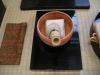 32 右蓋の上の茶碗を右、左、右と三手で扱い、古帛紗の上に仮置きする。