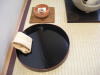 39 再び瓶掛正面に戻り、盆を両手でとり、勝手付きに置き、茶碗を古帛紗ごと盆の上にのせる。