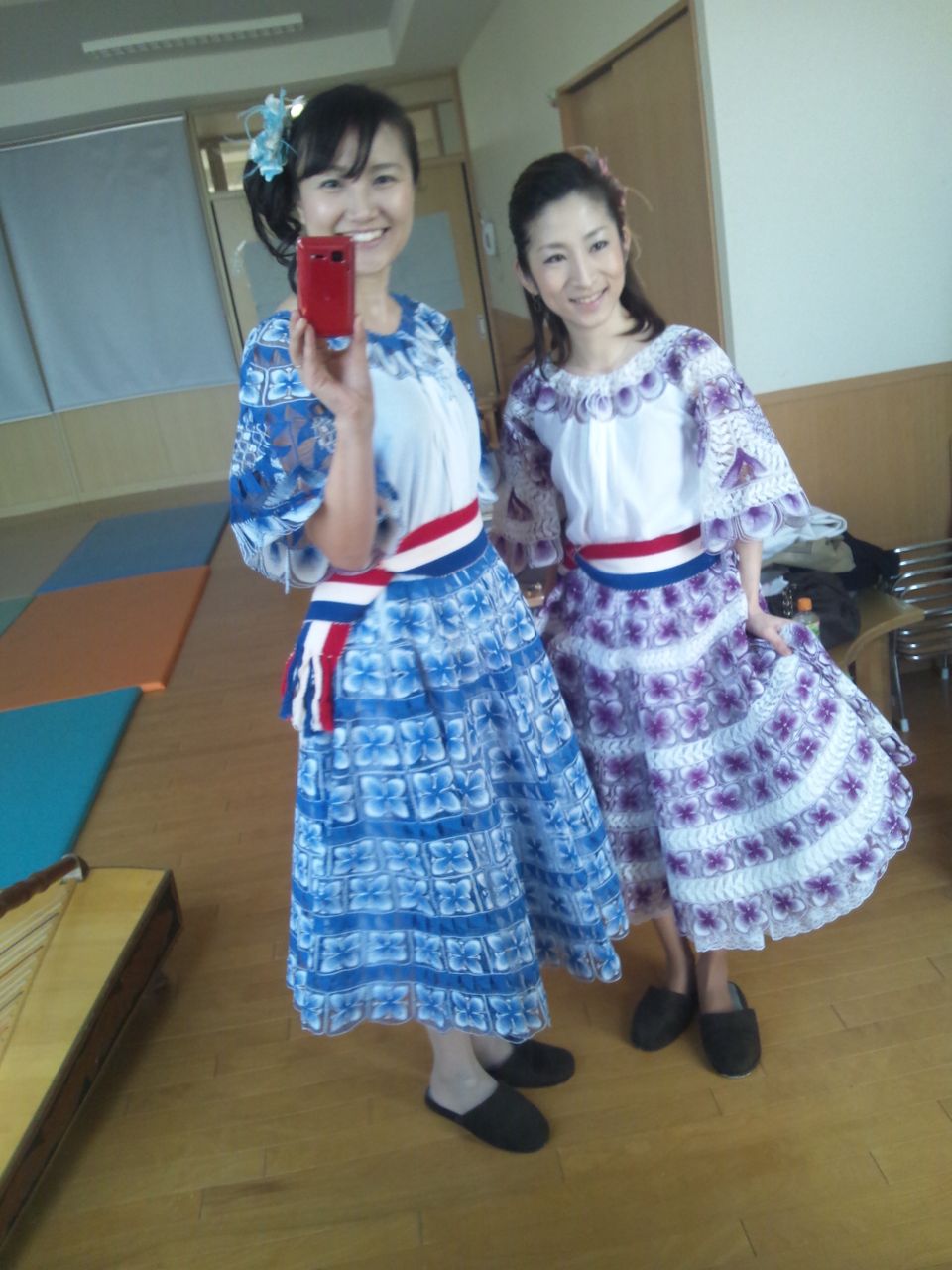 所沢市陽明保育園にてフルートの前田美保さんと。ニャンドゥティを着てもらっちゃいました。いつもはモノトーンでカッコよくきめている普段の前田さんを知る方にとっては、とってもレアな写真だと思います!