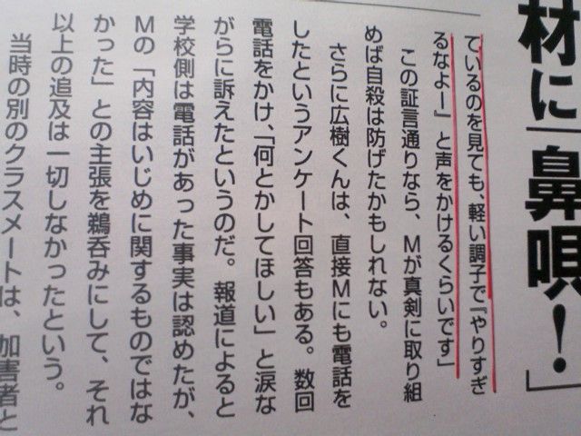―フライデーです。いじめへの対応について聞きたいのですが。
