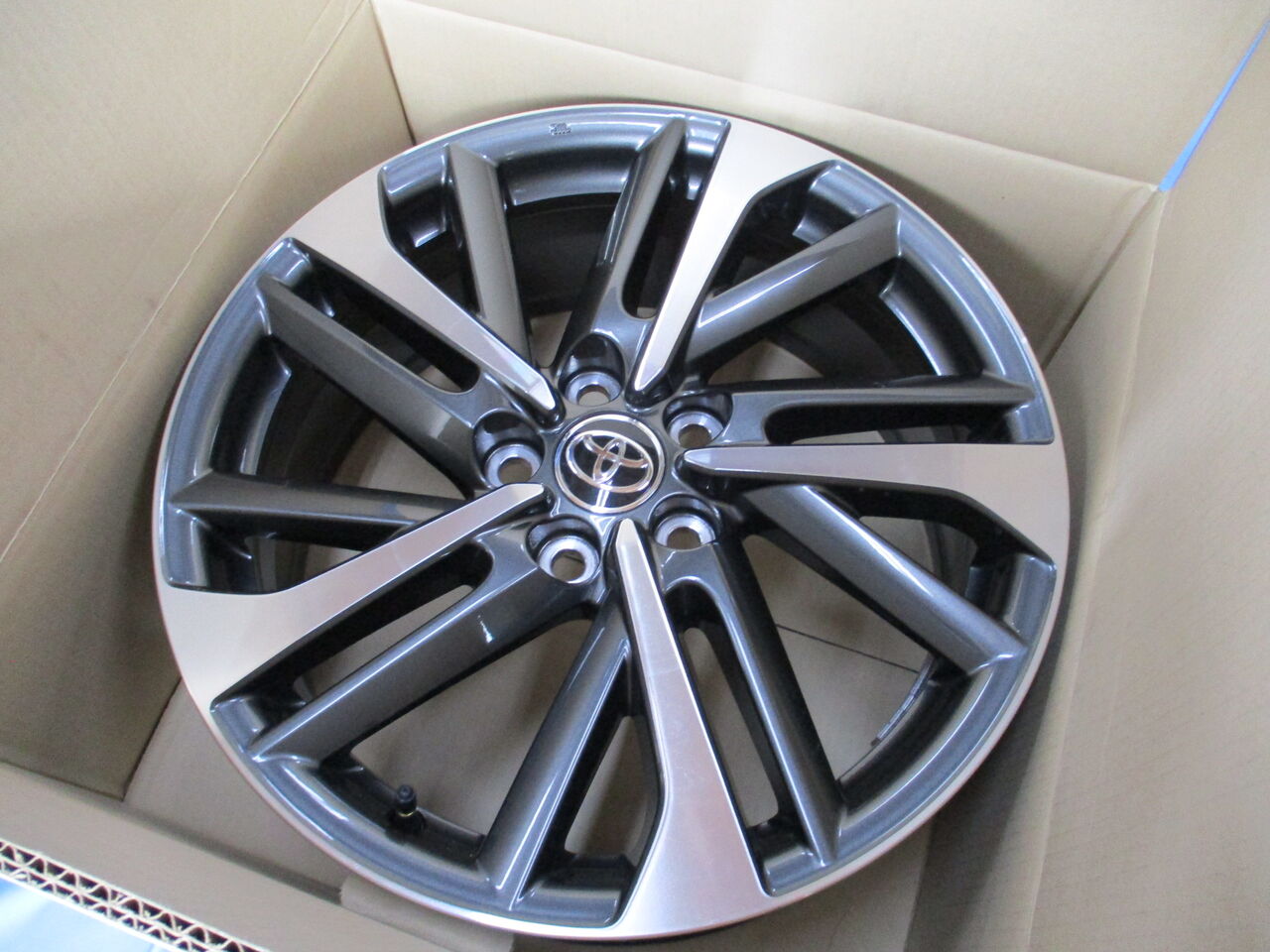 カローラクロス純正18インチホイール入荷カローラクロス純正18インチアルミホイールが入荷しましたー 昨年暮れに納車の新車からの取り外し品でございます 納車前にモデリスタホイールに交換したので モデリスタホイールの段ボールにて保管してます タイヤ外し時のキズ、バランスウェイトはそのままでございます ヤフオクにて出品中ですのでご検討くださいませ!