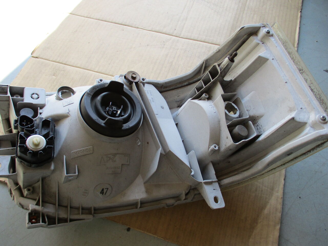 指が痛いですレアなレジアスエースバン(KDH201V) ヘッドランプバルブ球(H4)Lo切れのため交換です ランプASSY取外しは ランプ周りに養生テープして・・・あとは隙間に指を引っかけて力業ですなー やっぱ指が痛いです ピンクリップはサビ錆びになってます。 あとは掃除してバルブ交換して元に戻すだけぇ~~