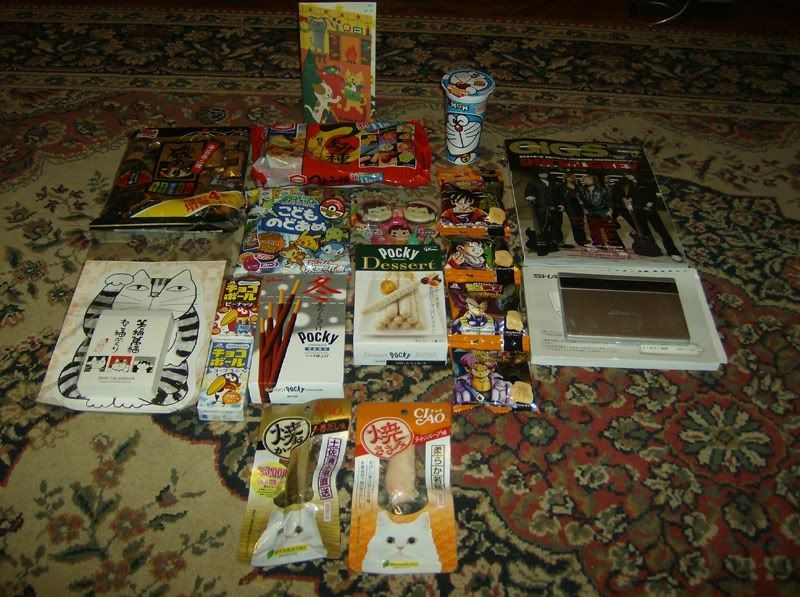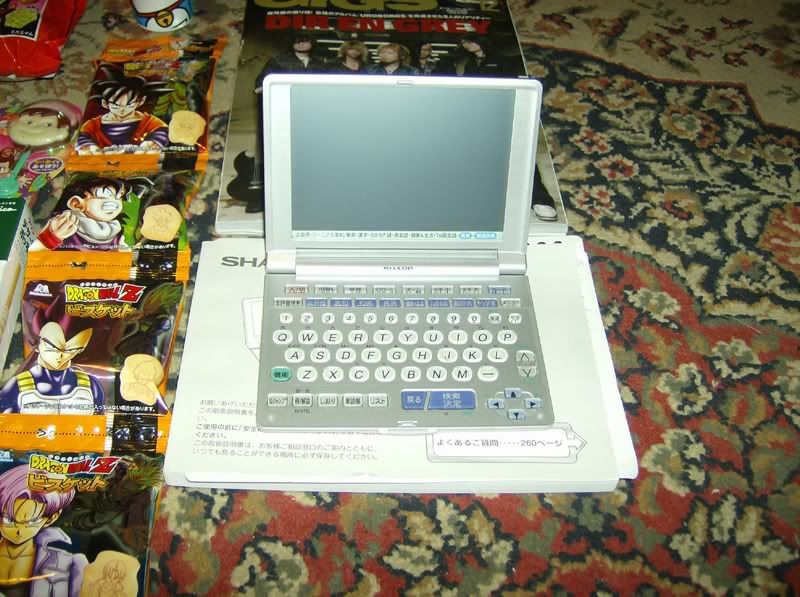 Also, my penpal, Tadanori sent me a huge package with lots of Japanese goodies, and a denshi jisho!!!