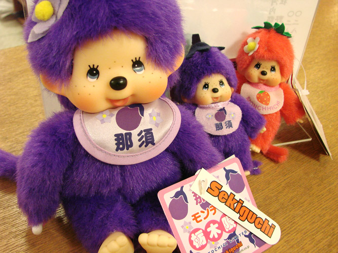 栃木限定キャラクター以前から強力プッシュさせていただいています「栃木限定・いちごモンチッチ」に「那須」バージョンが登場いたしました! 那須にかけて、なすび色のモンチッチです! ちゃんと頭のてっぺんになすびのヘタ的な帽子も被っていますね☆他には、出身自慢・ぎょうざマスコット「僕らは宇都宮で育ちました!」¥400もオススメです。宇都宮で生まれ育ったぎょうざ君、凛々しい顔立ちに、ほんのり赤い頬の色がういういしいです。ちゃんとちっちゃい手足もついていますよ☆なにやら性格は口下手らしく、タグに「口下手なのはしゃ~んめ!」とあります。(「しゃ~んめ」とは、栃木弁で「仕方がない」)この子たちは、あさやのお土産街道「麻屋」にて、好評発売中☆是非おともだちになってあげてくださいませby romi