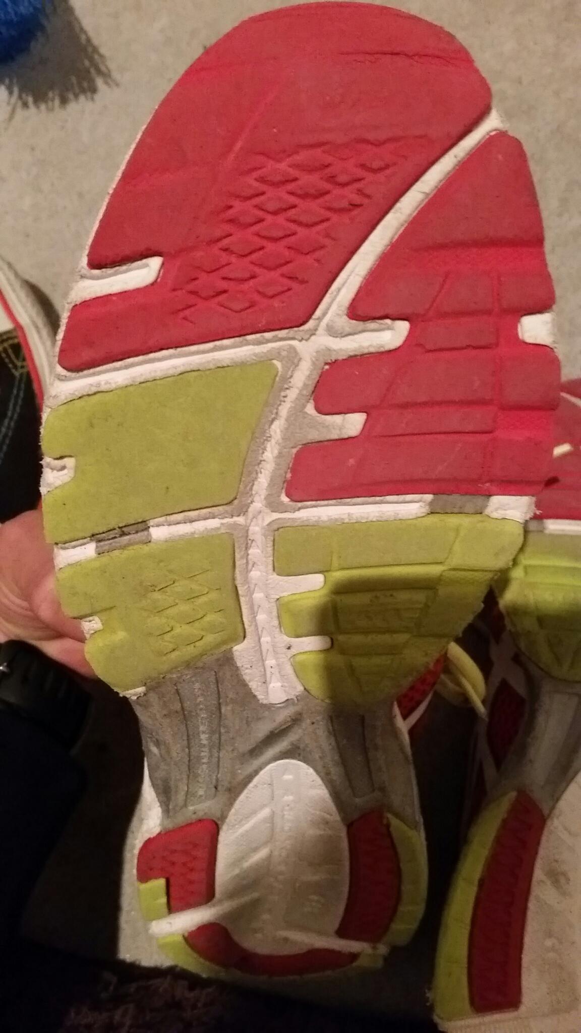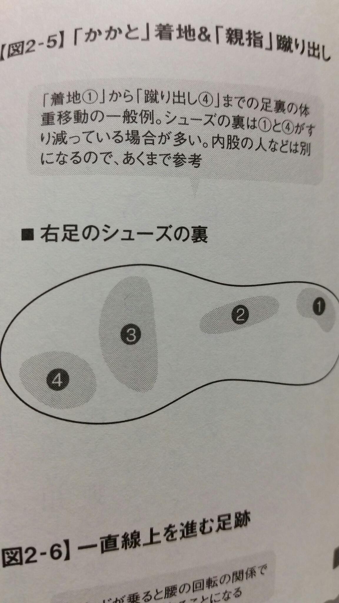 先日買った小出義雄氏の本の接地について。 かかとから接地するためシューズのかかとがすり減る。そうなっているのを確認しようとマイシューズの裏を見たら、カカトが買ったときのまま。すり減っていない。 ということはどこが減ったというと一目瞭然、爪先がスリヘリ型が消えている状態です。 1月アキレス健痛め2月いわきサンシャインマラソンを諦めた原因がつまさき接地だと思われます。
