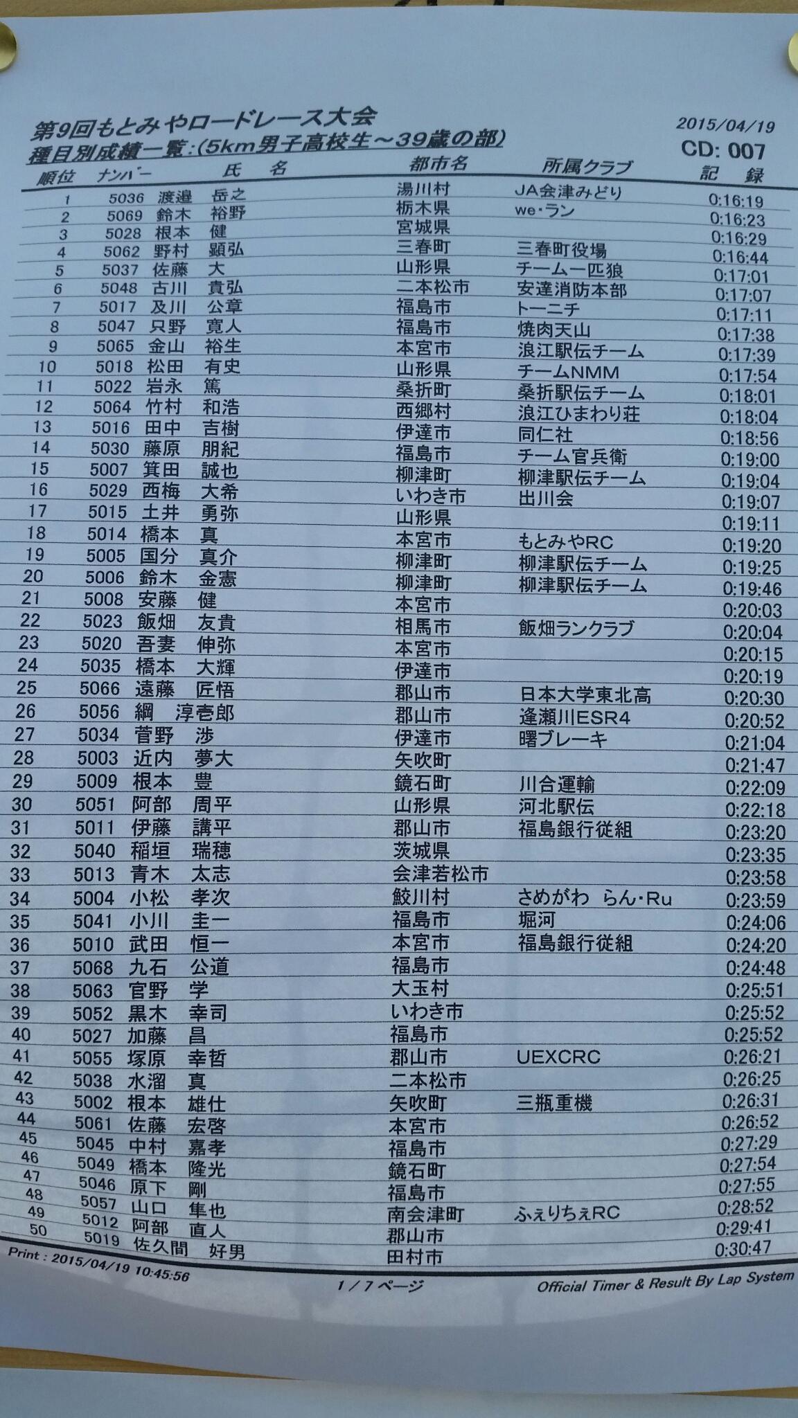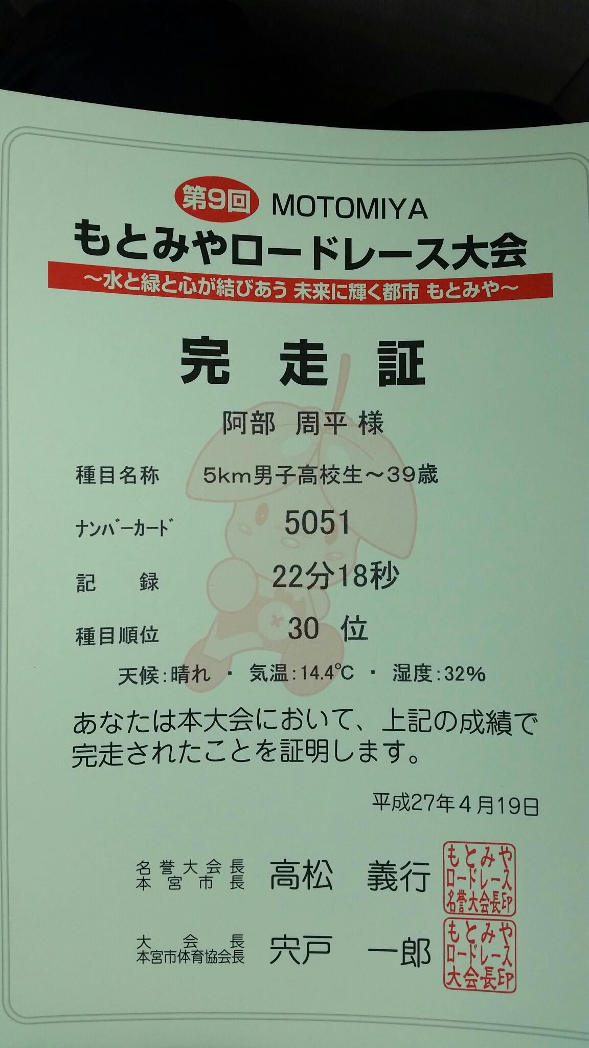 5㌔タイム22'18" シーズンベストタイムです!69人中30位。