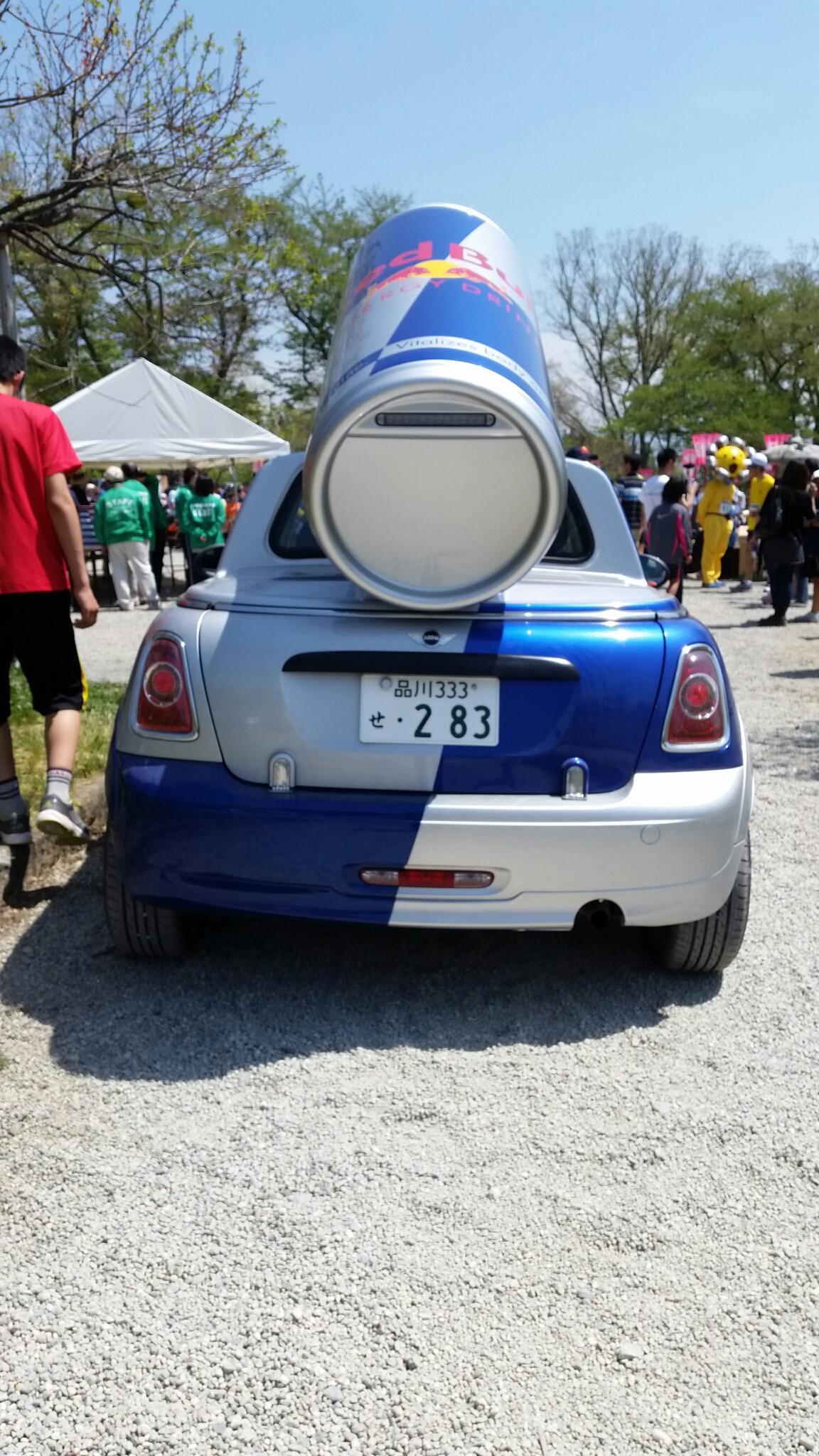 ミニクーパーにレッドブル缶はオシャレ