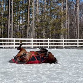 雪の中、リラは喜び馬場駈け周り、私は家で丸くなる?