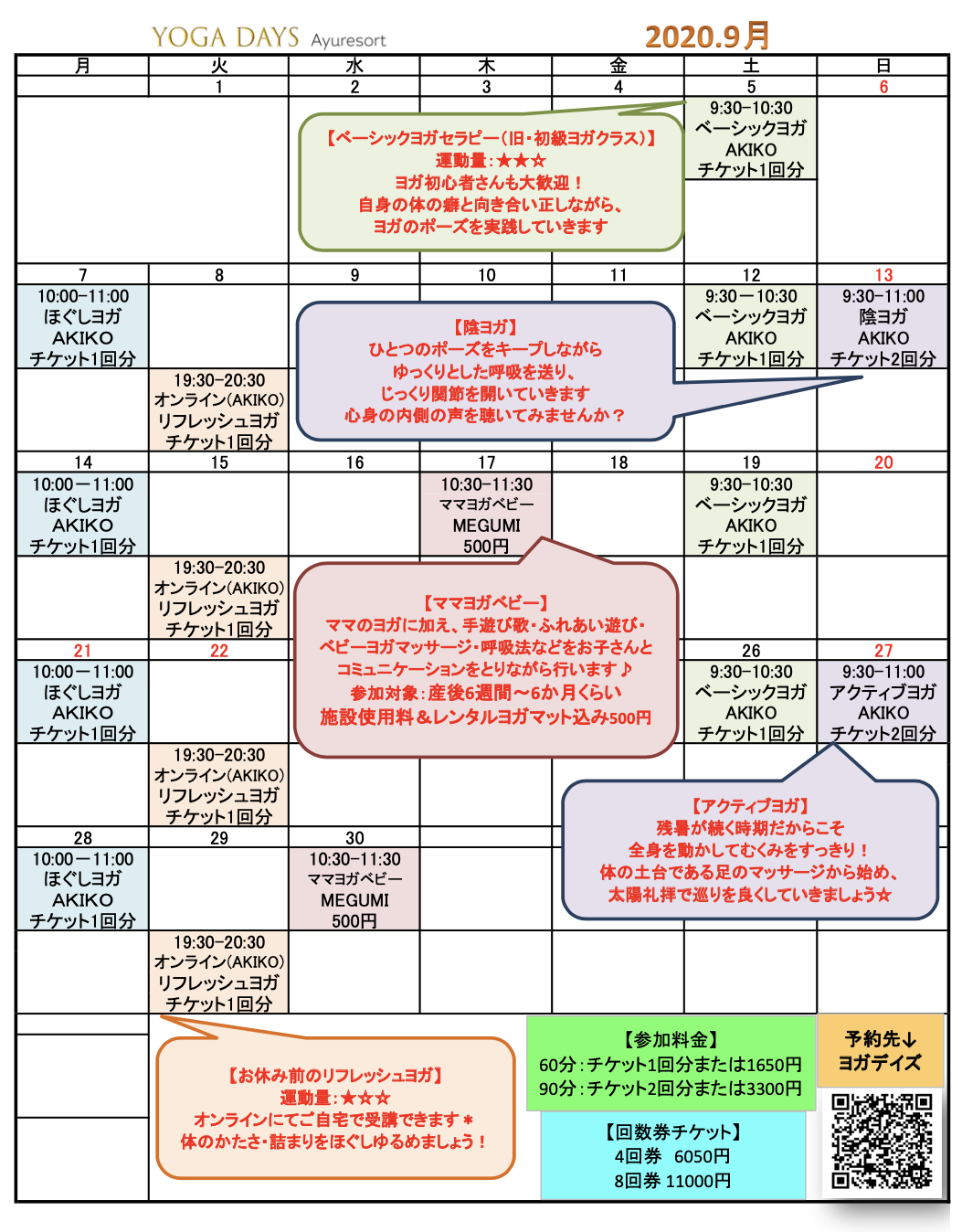 9月もヨガデイズをお借りしてレッスンを開催します♪