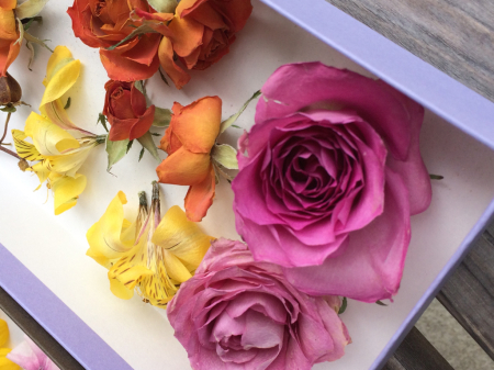 ドライフラワーのシャビーな感じとはまた違った、可愛らしいドライフラワー。