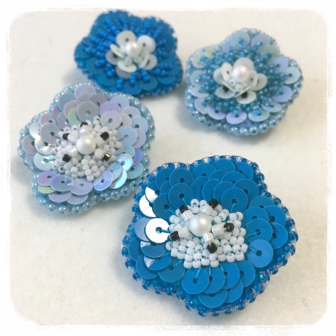 お店に並ぶ藍染めビーズも取り入れながらブローチを作りました💙