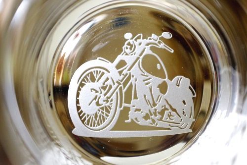 今回はお父様への還暦祝いにご依頼いただいておりました、名入れロックグラスのご紹介です。今回はバイク好きの方だとの事で、グラス底の部分にはバイクのシルエットを彫刻しました!