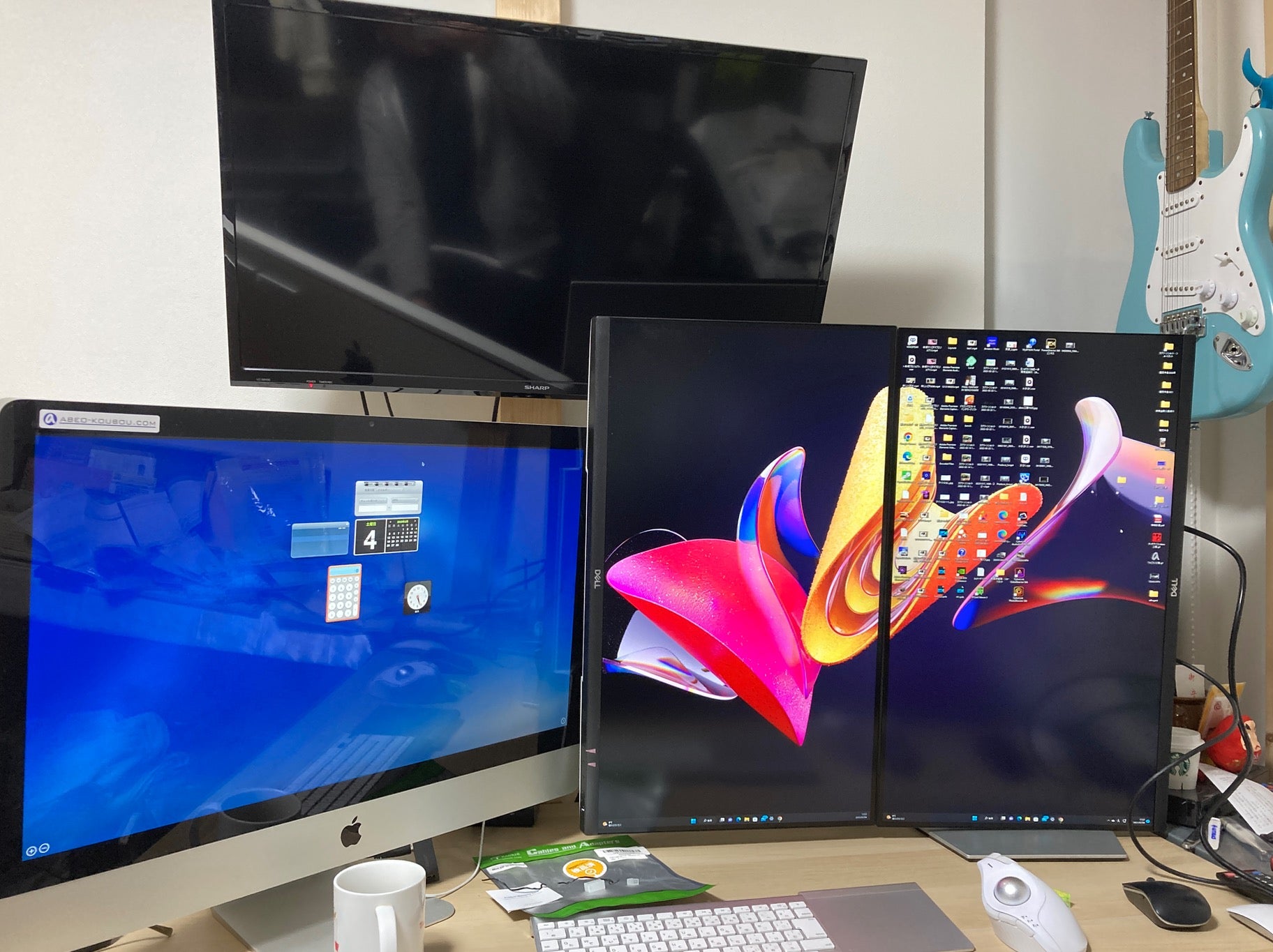 で、左下のはiMac。これは右の縦モニターをサブとして使っています。