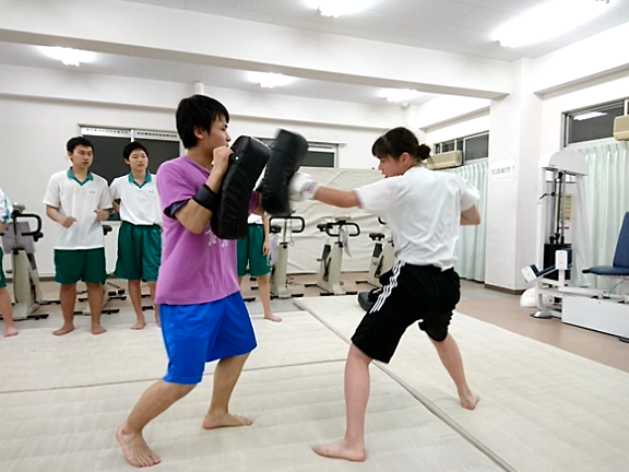 女子高生ミット打ち