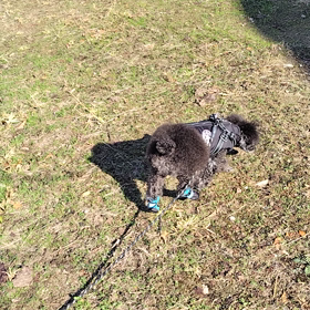 4足に靴を履いてあさんぽ