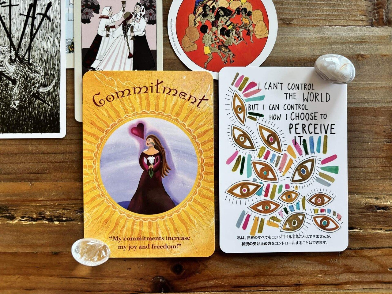 まず、状況の受け止め方をコントロールすることはできるよ、というカードですから、これは素直に「今の状況を違った受け止め方をしてみてほしい」というメッセージだと思います。そして約束のカードは、約束が喜びと自由をもたらすと言っています。また、約束とは立場を決めることとも言っています。彼女に言いそびれた言葉が気がかりであるCさんにとって、これはどんな意味を持つでしょうか。もう少しカードに具体的に聞いてみます。