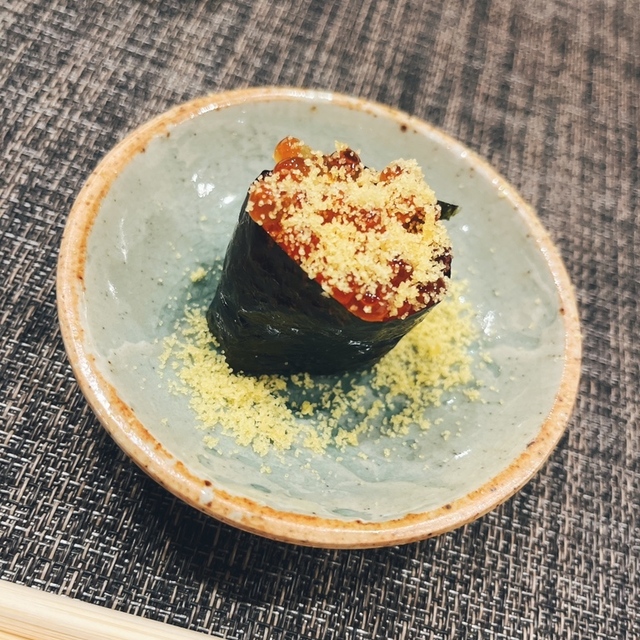 寿司ネタでイクラのからすみがけ