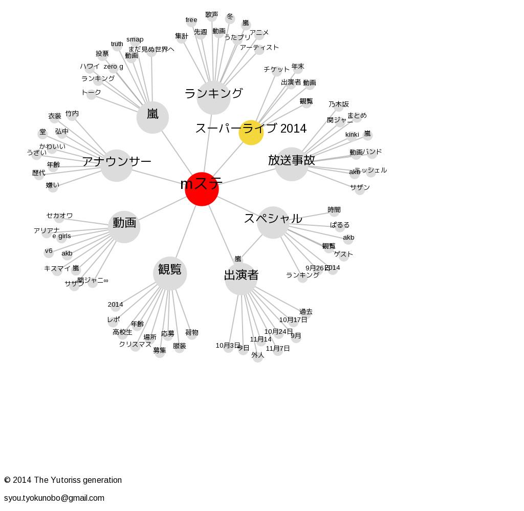 mステ と一緒に検索されている言葉は[動画, 観覧, 出演者, 嵐, 放送事故, ランキング, スペシャル, アナウンサー, スーパーライブ 2014]です。