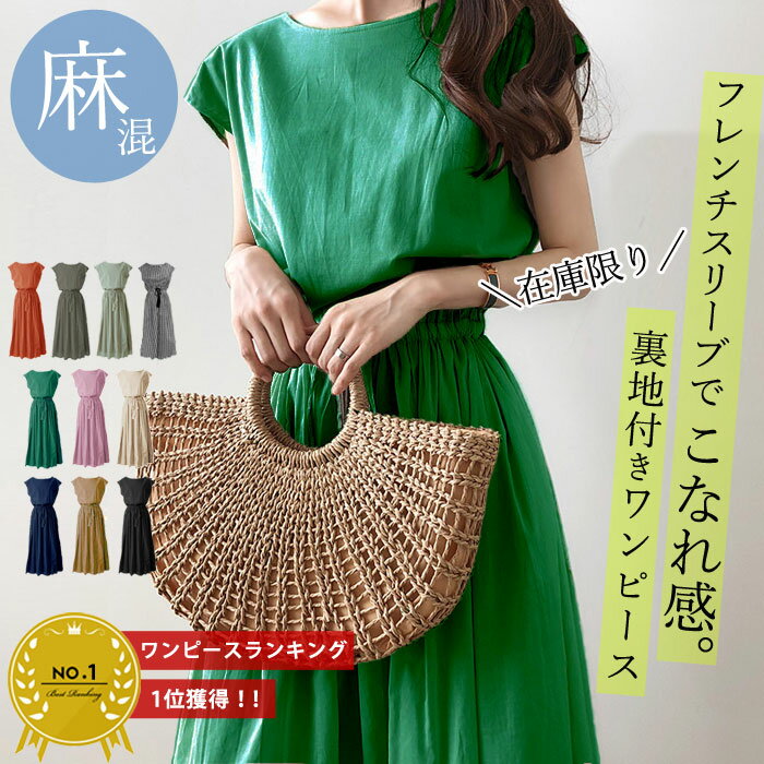 【30%OFF→1953円!クーポンで!】 ワンピース 麻混 リネン混 春夏 涼しい ギンガムチェック 無地 ウエストゴム 綿麻 ワンピース ロング マキシ ライン ワンピ レディース (送料無料)[郵3]^w628^楽天市場${EVENT_LABEL_01_TEXT}