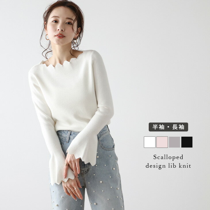 【半額クーポン対象】リブニット スカラップ 半袖 長袖 フレアスリーブ ボートネック フェミニン 華奢魅せ トップス レディース フリーサイズ メール便 2024春夏新作【lsss24-tp108】【即納:1-5営業日】【送料無料】ユ込2楽天市場${EVENT_LABEL_01_TEXT}