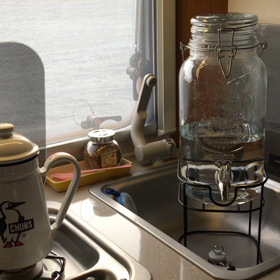 キャンピングトレーラー内の朝パン
