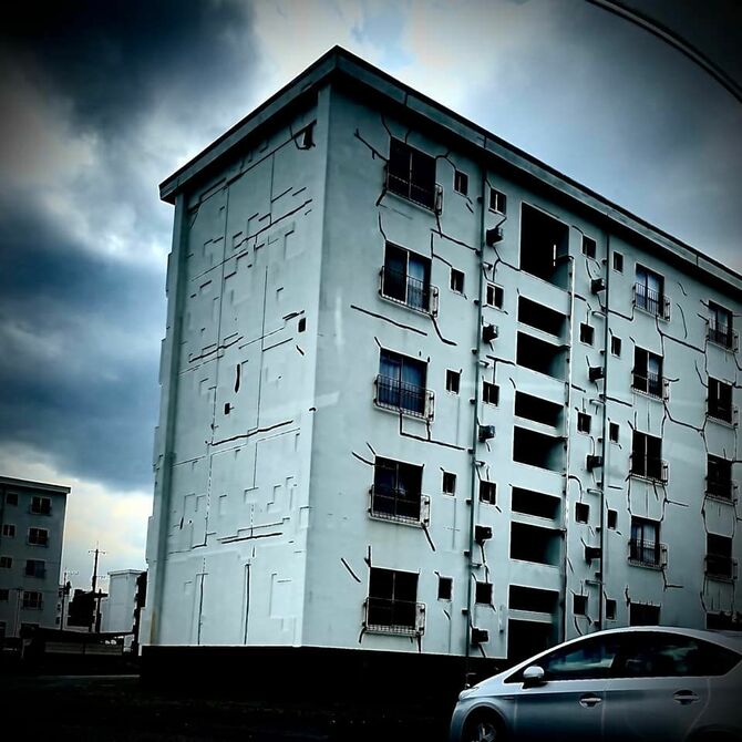 補修跡だらけの壁