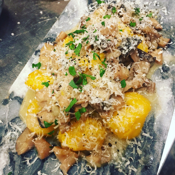 ホクホクのカボチャのニョッキを舞茸、シメジ、エリンギのソースで♪