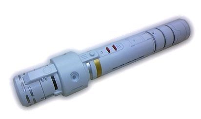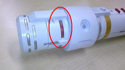 商品をONにしたときや、対象物に対してサーベルを振りぬいたときなどに発光部が光を放つ。振りぬいていないときなどは音と連動して鈍く光を放ち、臨場感を視覚的に体感できる。 |