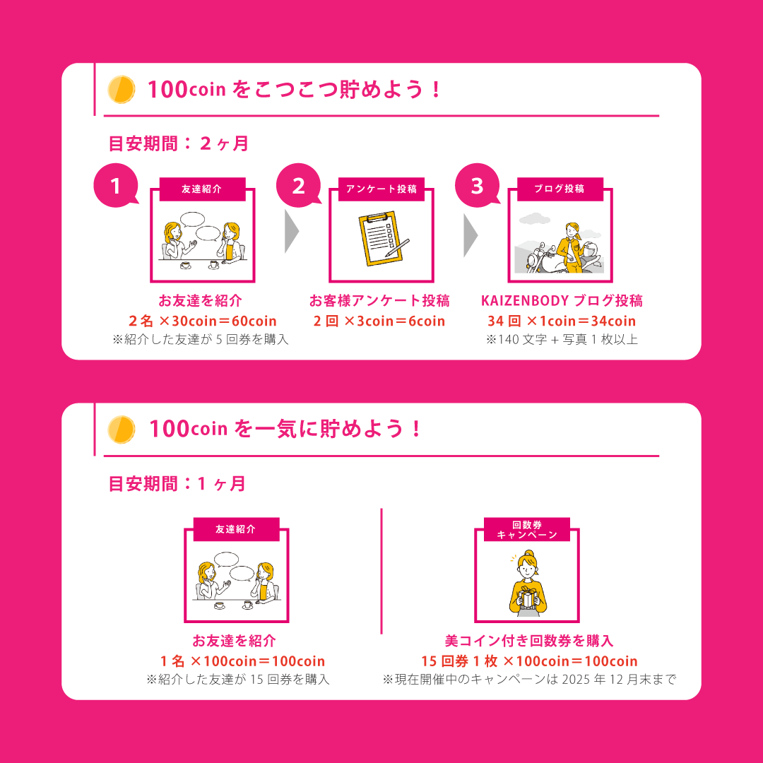 中には1か月で300coin以上獲得して、KAIZENBODYの特典をフル活用されている方もいらっしゃいます。