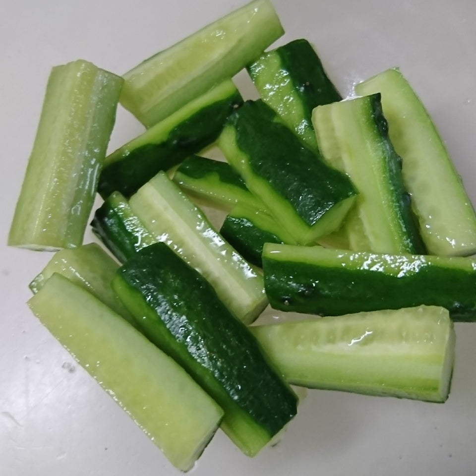 きゅうりを切って ひとつまみの塩で揉みもみして10分放置