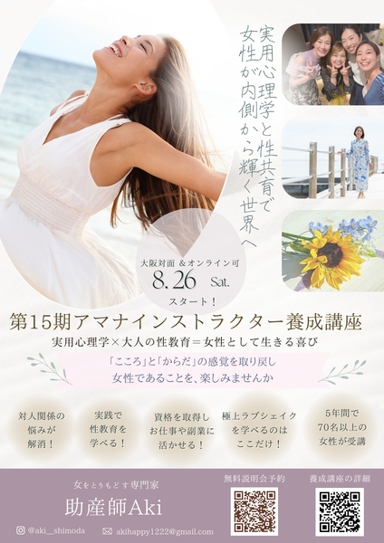第15期アマナインストラクター養成講座を8/26(土)開講します