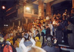 ガンガーには写真のような階段状のガートと呼ばれる場所が数十箇所ある。そのガートをボートに乗って河側から見ることをガンガーでは是非したかった。外国人料金(インド人の10倍)の金額を払ってボートに乗り、ガート観光を済ませる。これまた非常に疲れる料金交渉など、インド人との言い合いがあったが、もう省略する。その後、様々なガートを回った。生活感のあるガート、観光的なガート、死体を焼くガート。色々なガートがあった。夜になり、メインのガートでお祈りがあると聞き、行ってみる。すでに人だかりができていて、脇の高台から儀式を見ることにした。