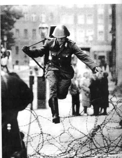 東ベルリンから西ベルリンへ逃げる兵士です。逃げるときに銃殺される人も多かったそうです。それが写真などで残されています。