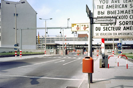 その名はチェックポイント・チャーリー。要するにアメリカとソ連の間の検問所です。この境界では何人もの人が死んでいるらしい・・・・・
