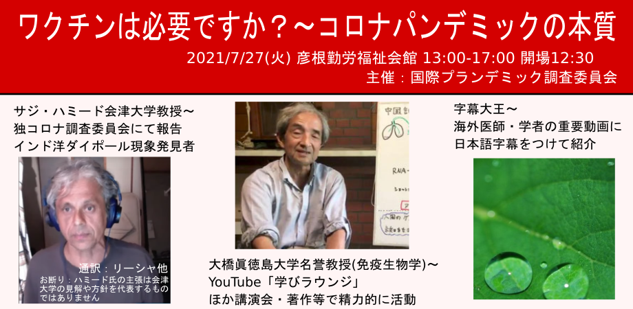 お近くにお住いの方、メディアでは報道されないワクチン情報をじっくり聞きたい方、ぜひ足をお運びください。